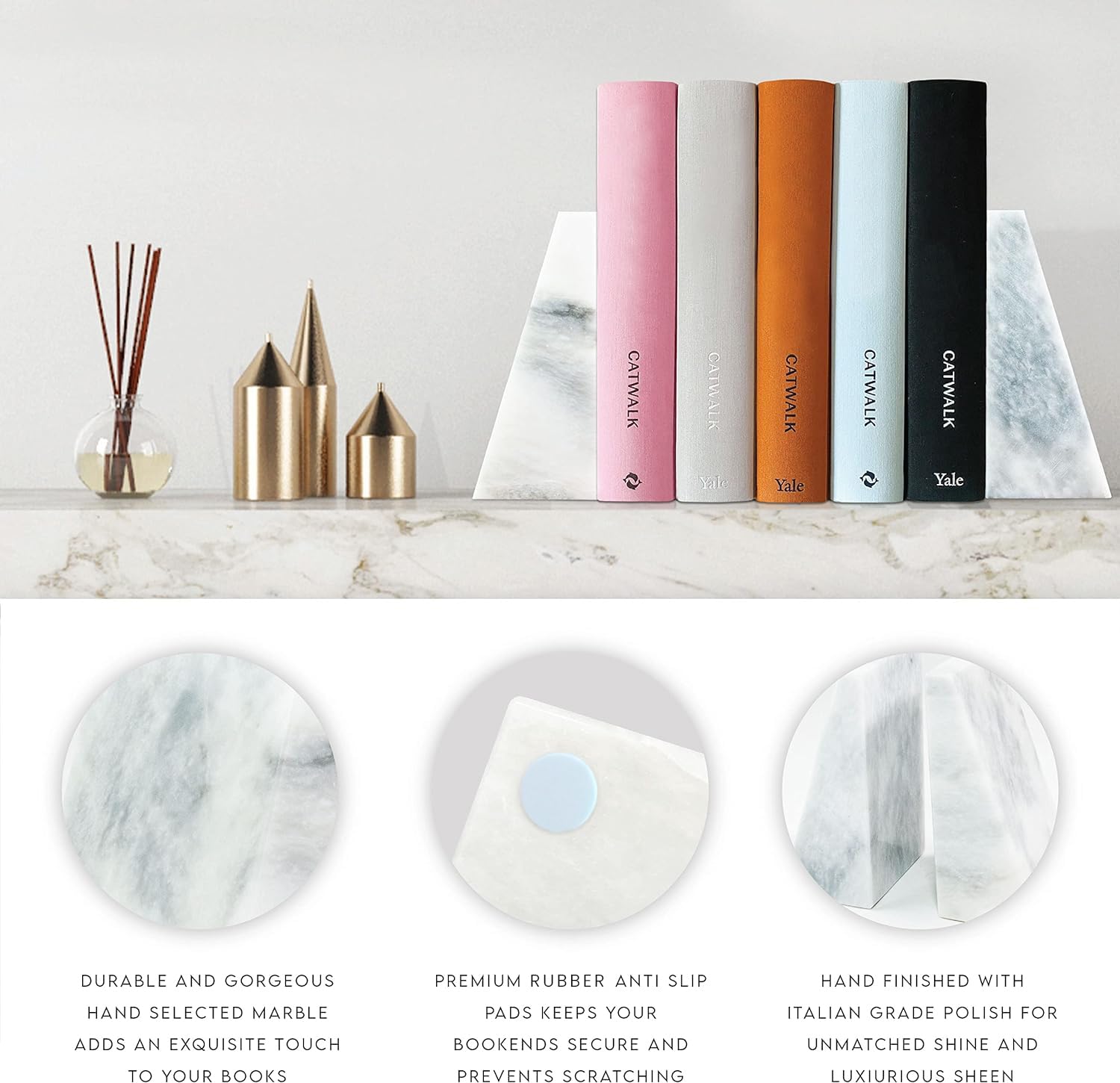 - UNBELIEVABLE FINISH AND SHINE: ONLY OTTIMO Marble Bookends are polished with Italian Grade polish that enables each bookend to SHINE and really accentuate your home. Our white and black versions are produced to an exceptional standard**Color and pattern may vary due to the nature of natural marble
